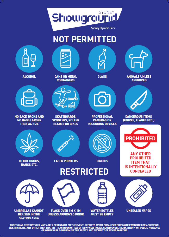 *Sydney Showground is a cashless venue